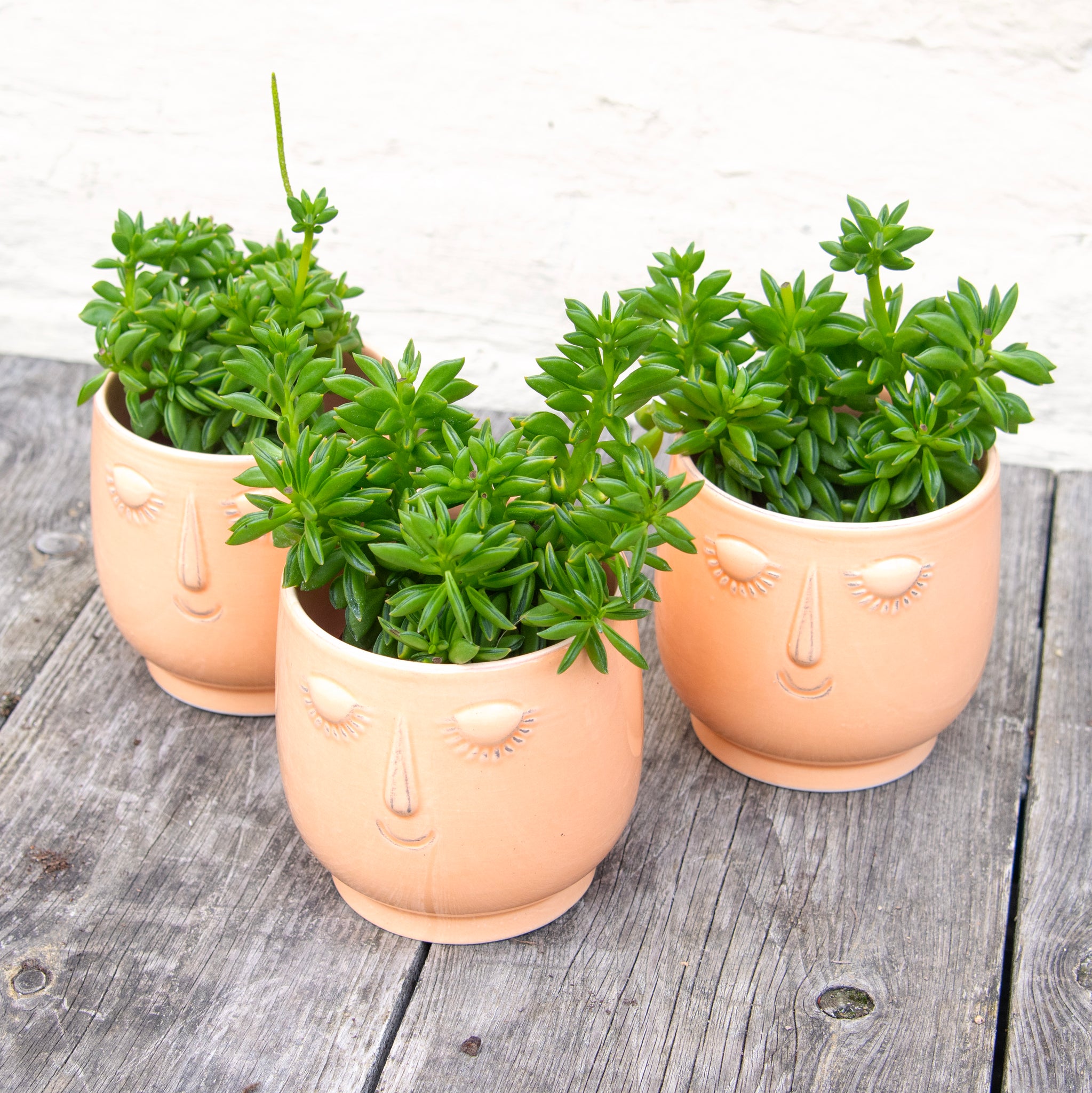 Supplied in a plastic pot. Fits our Peach 9cm Happy Face Plant Pot.