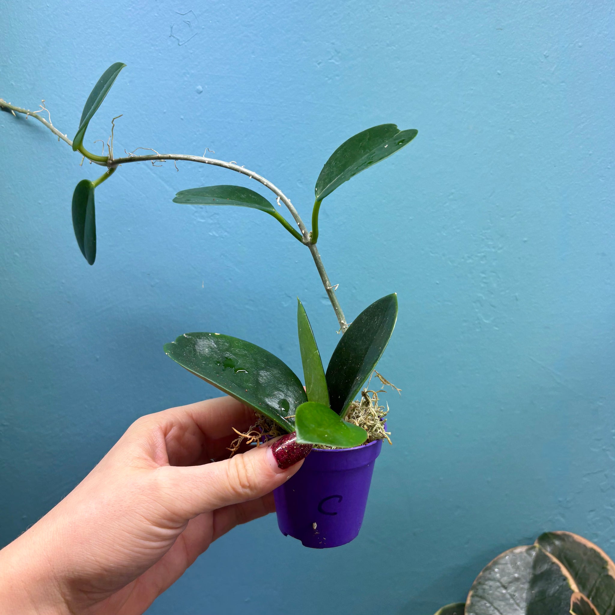 Other common names for Hoya are: Wax plant, Waxvine, Honey Plant and Porcelain Flower. They are relatively easy to care for and are known to have air-purifying qualities. Their leaves are thick and full like a succulents, they can store a lot of water in them so you are more likely to over water this plant than underwater it. If you treat them right, Hoyas have been know to live for decades!