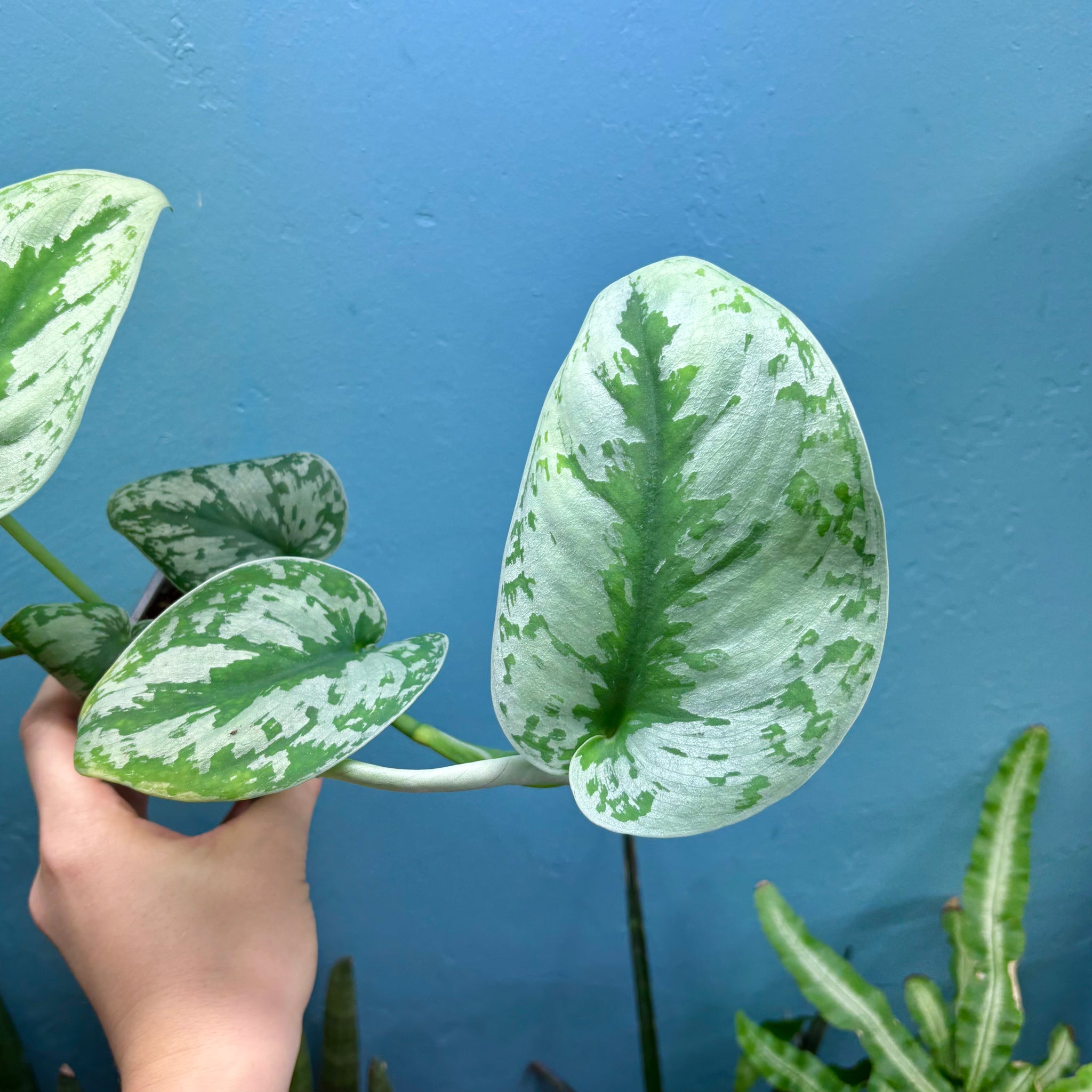 You may also know this plant as the Silver Vine, Silver Cloud, Silk Pothos or Silver Philodendron. Pictus means 'painted' in Latin and refers to the silver variegation mentioned before.