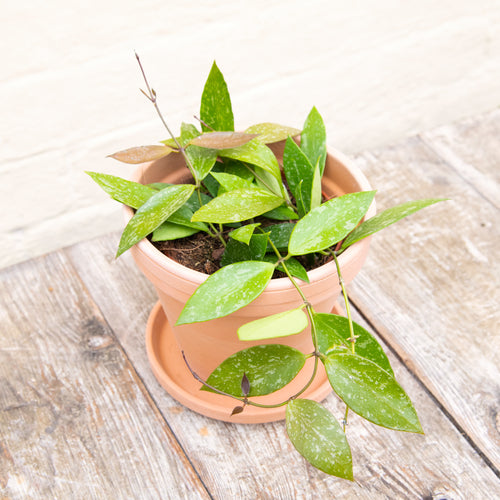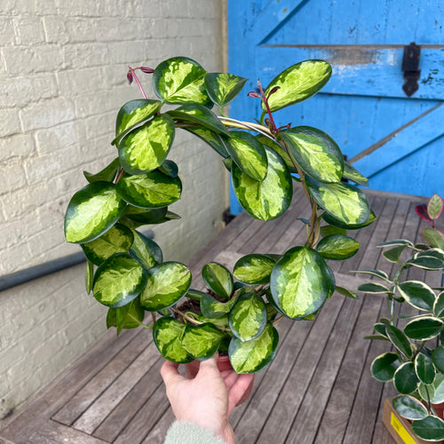 Indulge in the thick, waxy leaves of Hoya plants, known for their trailing vines and clusters of star-shaped flowers. These captivating plants, such as Hoya Carnosa 'Krimson Princess' and Hoya Linearis 'Grass Rope,' come in a variety of shapes and sizes. Perfect for hanging baskets and windowsills to give a jungle atmosphere to any room.